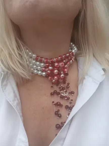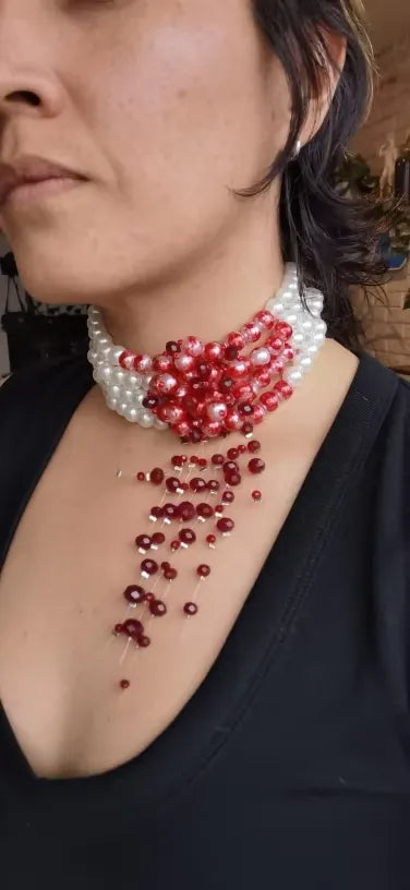 Can't get enough of this necklace. The red blood pattern with pearls is a daring but gorgeous choice. I wore it for a Halloween party and everyone kept complimenting my look. The quality is fantastic and it's surprisingly comfortable to wear all night. Just wow!